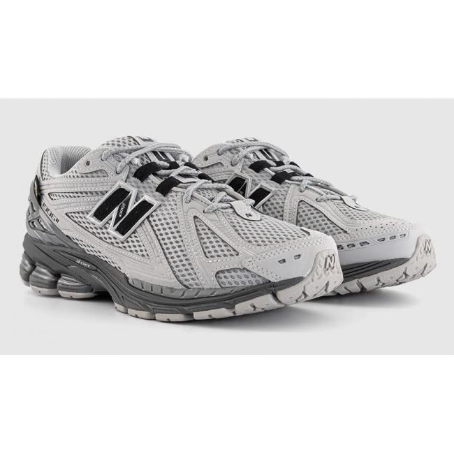 Стильная комбинация оттенков Raincloud, черного и цементно-серого создает многослойный, сложный образ. Контрастные вставки, металлизированные детали и фирменная панель N-логотипа делают эту модель визуальной доминантой любого аутфита.