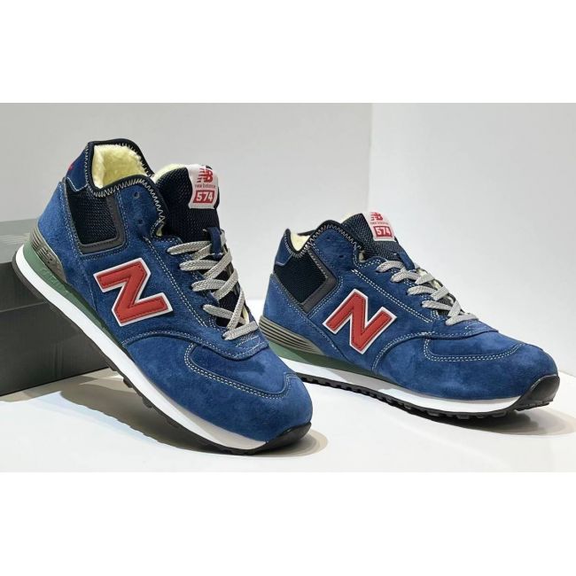 Описание Кроссовки New Balance 574 Mid Suede Blue Navy Red с мехом