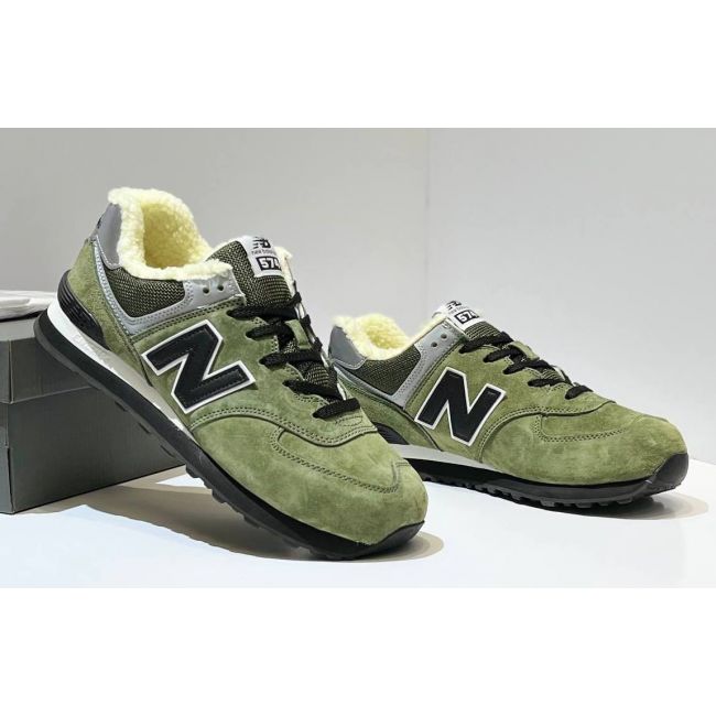 Описание Кроссовки New Balance 574 Suede Green Black с мехом