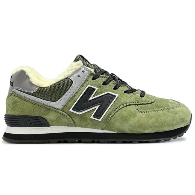 Кроссовки New Balance 574 Suede Green Black с мехом
