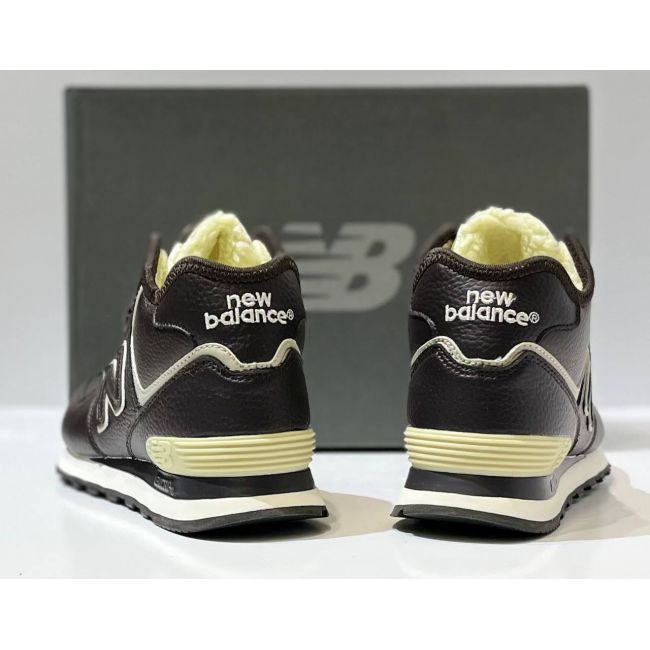 Кроссовки New Balance 574 Mid Brown White Leather с мехом