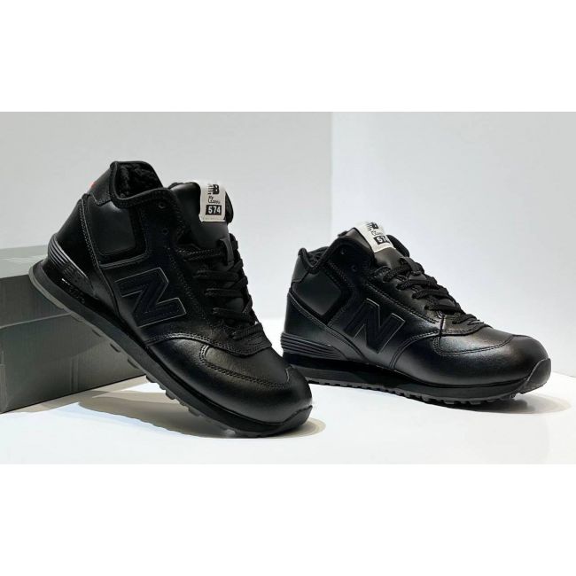 Кроссовки New Balance 574 Mid Triple Black Leather с мехом