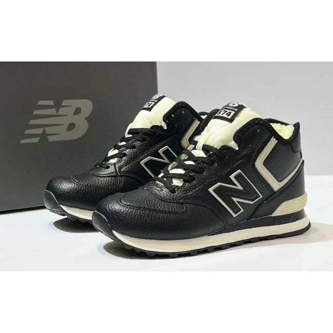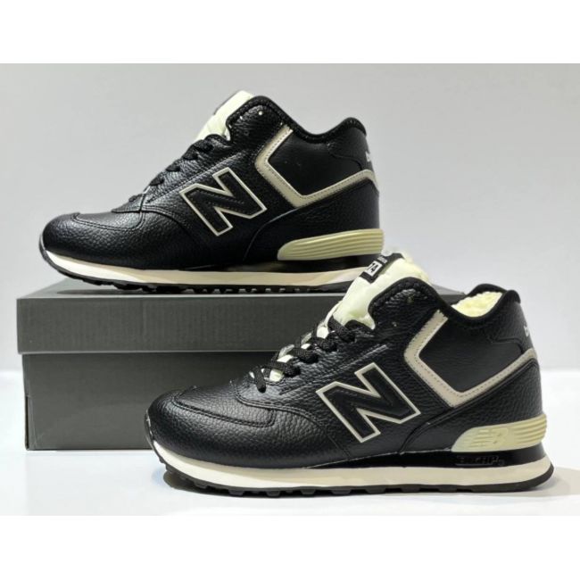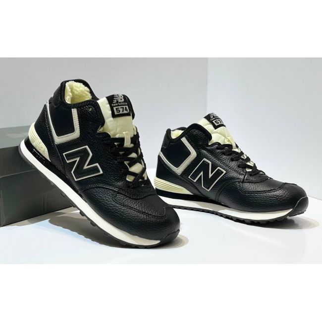 Кроссовки New Balance 574 Mid Black White Leather с мехом